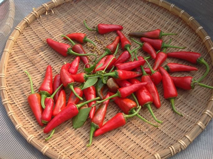 벌레 먹은 고추. 알록달록 색이 참 예쁘네요. 나만 그런가요?