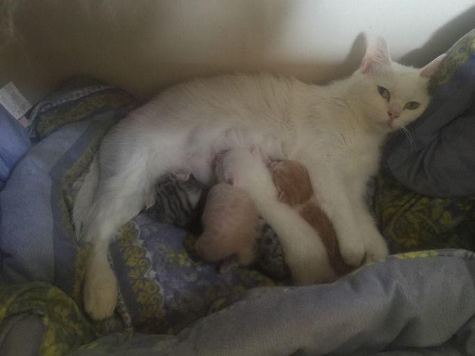 퇴원하고 집으로 데려오니 이렇게 몇 달만에 또 새끼를 낳았습니다.