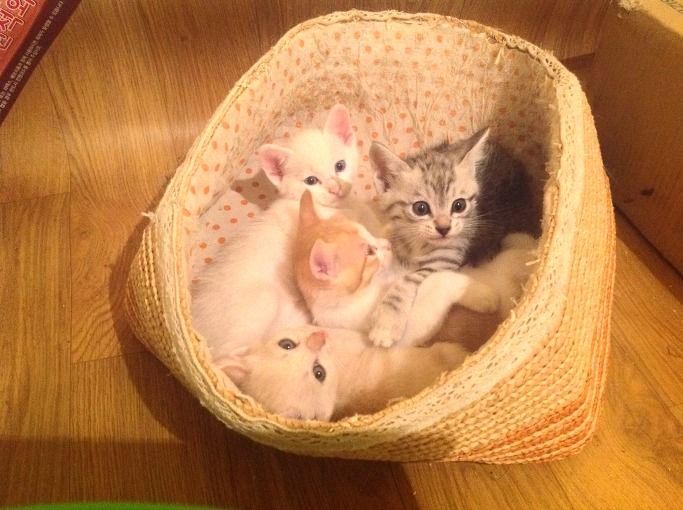 네 마리를 낳았습니다. 대한민국에서 따와서 이름을 대니, 하니,미니,구기라고 지었죠.