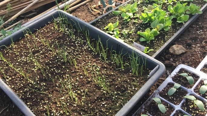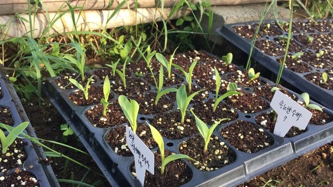 1차로 넣은 씨앗들이 싹이 터 이만큼 자랐다.