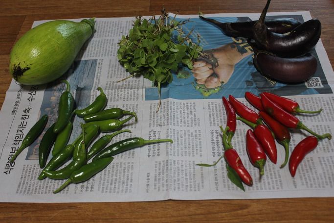 땅 갈지 않고 퇴비, 비료, 농약 없이 했으며 몇 개는 나무 작대기로 지지를 해주었습니다.